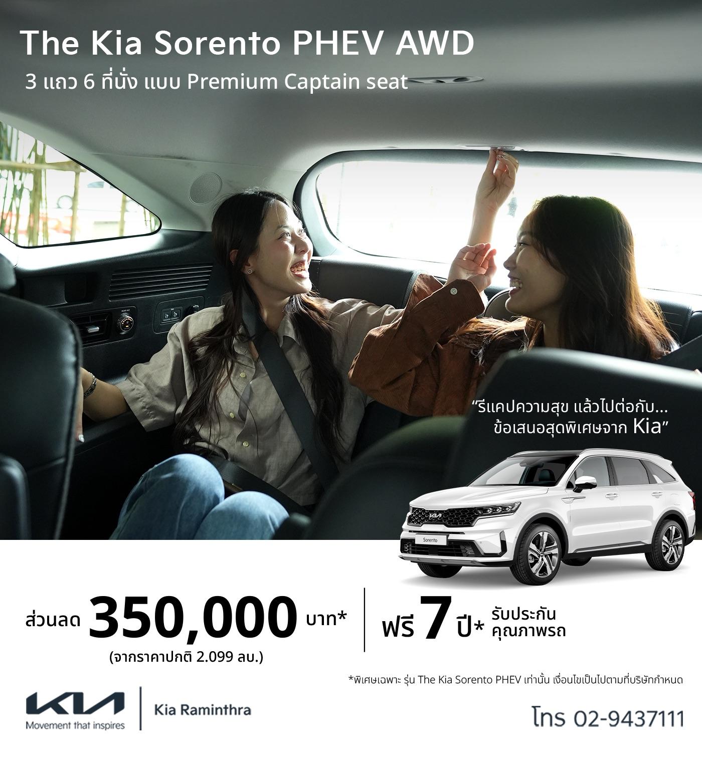 เก็บโมเมนต์ดีๆแล้วไปต่อกับดีลสุดคุ้ม The Kia Sorento PHEV รถ SUV 3 แถว 6 ที่นั่ง ลดพิเศษ 350,000 บาท*