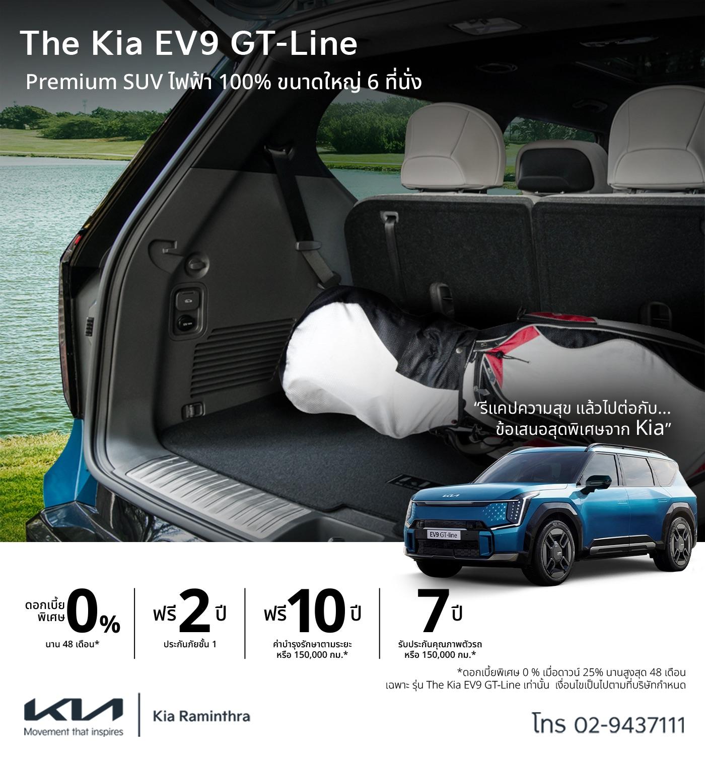 เปิดโหมดความสุข ไปต่อกับข้อเสนอพิเศษ The Kia EV9 GT-Line รถพรีเมี่ยม SUV ไฟฟ้า 100% ขนาดใหญ่ 6 ที่นั่ง